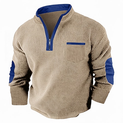 Per uomo Maglietta Waffle Maglietta Maglia Henley a nido d'ape Manica Lunga Mezza zip Autunno Autunno Inverno Tinta unica Patchwork Tradizionale / Vintage Casual Patchwork Blocco di colore Casuale