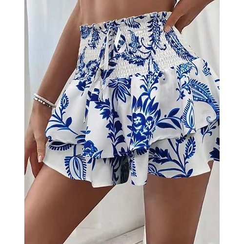 Per donna Shorts Vacanza Streetwear Casual Corto Vita media Floreale Elastico in vita Stampa Confortevole Micro-elastico Quotidiano All'aperto Vacanza Blu Cammello Bianco Rosa Estate Primavera