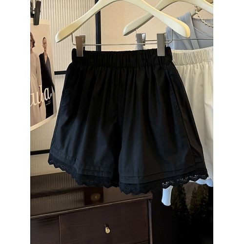 Per donna Pantaloni da tuta Chinos Shorts Vacanza Moda Streetwear Corto Vita Alta Semplice Pizzo Fascia Elastica Comodo Comodità Morbido Elasticizzato All'aperto Streetwear Nero Bianco Estate