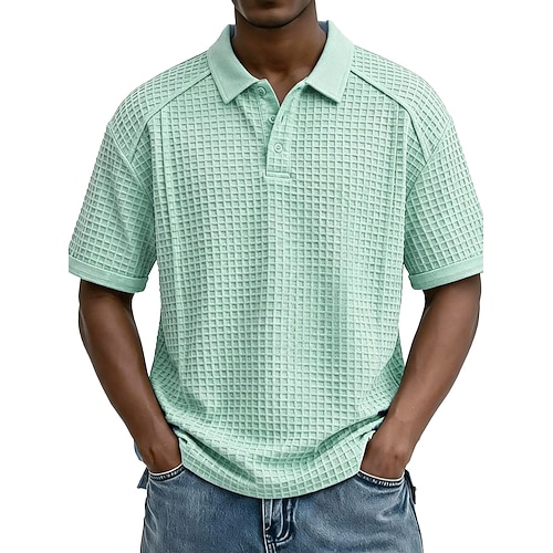 Per uomo Maglia da golf Polo a Maglia Waffle Casuale Affari Classico Manica Corta Moda Moderno Tinta unica Bottoni Manica corta Estate Primavera Vestibilità regolare Nero Bianco Verde chiaro Blu