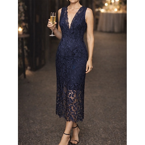 Per donna Abito Lungo Maxi Abito Abito nero Abito in Pizzo Abito da Cocktail Mini abito Moda Classico Moderno Quotidiano Vacanza Uscire Vestibilità regolare Semplice Senza Maniche Scollo a V Nero Blu