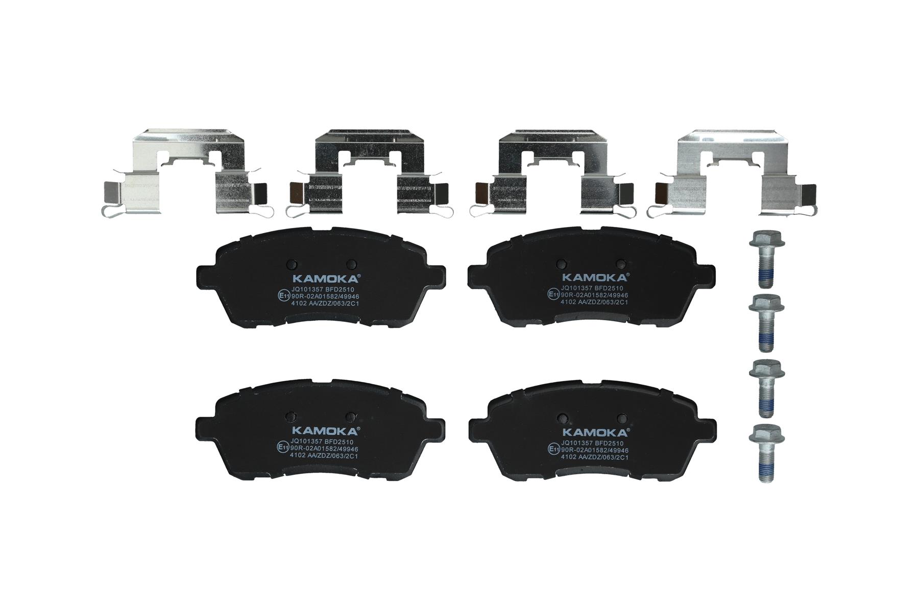 KAMOKA Bremsbelagsatz, Scheibenbremse JQ101357 vorne rechts links mit Zubehör für SUZUKI MAZDA FORD SUBARU DAIHATSU E4B12001AB 04465-B1120-000 DFY1-33