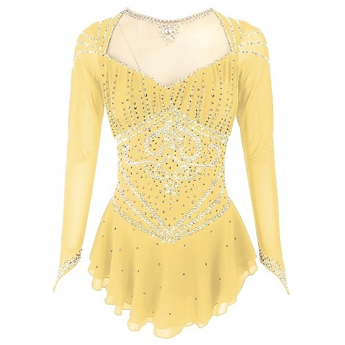Vestito da pattinaggio artistico Per donna Da ragazza Pattinaggio sul ghiaccio Vestiti Bianco Giallo Scollatura posteriore Collage Elastene Elevata elasticità Addestramento Da allenamento