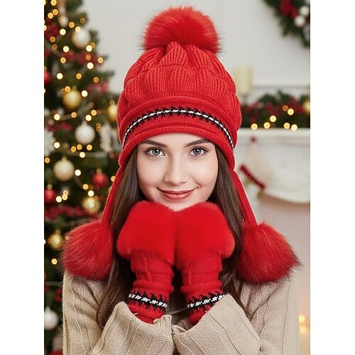 Set di cappello e guanti natalizi in maglia da donna, disponibile in diversi colori, comodo ed elegante, perfetto per le attività invernali all'aperto e come regalo per le feste