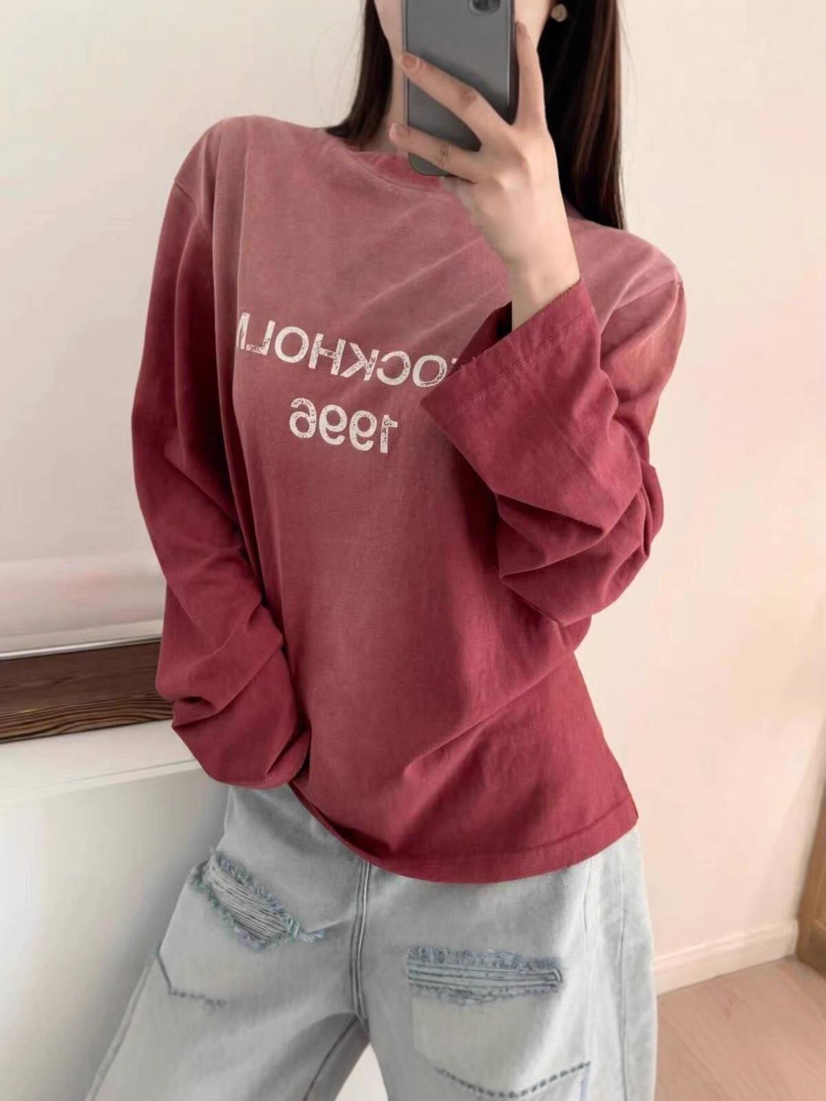 Unisex Vroege Herfst 2025 Briefprint Ronde Hals Lange Mouwen Losse Top cm groen