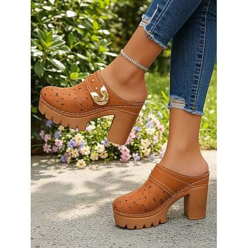 zoccoli con fibbia massiccia da donna, scarpe slip-on con plateau retrò per lavoro casual, brunch del fine settimana e moda autunnale