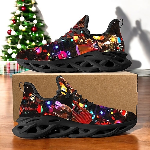 sneakers da uomo con stampa a LED illuminata natalizia – design luminoso e vivace con suola nera