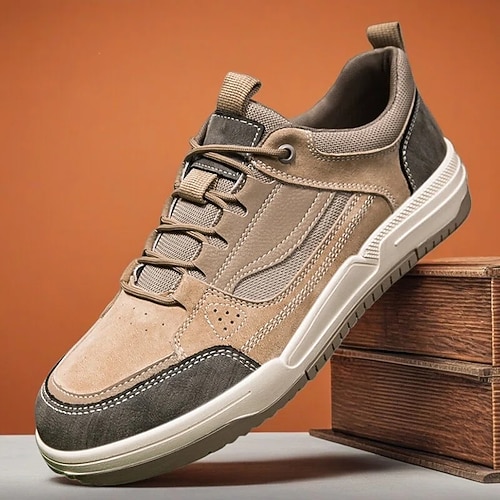 sneakers casual da uomo beige e marrone con lacci e vestibilità comoda: alla moda e funzionali per il lavoro, il tempo libero e il comfort quotidiano