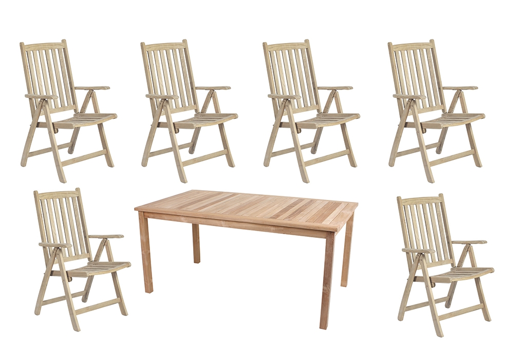 7-teilige Tischgruppe Sitzgruppe Gruppe Garten Tisch Hochlehner Stuhl Teak