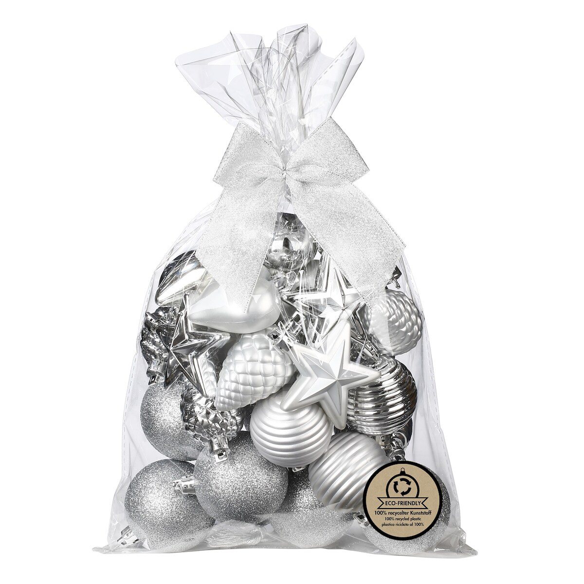 30 Weihnachtskugeln 5-7cm Kunststoff Sterne Zapfen Herzen Mix Christbaumkugeln