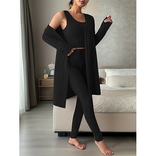 Per donna Set Pigiama Casual Comfort Colore Puro Elastico in vita Cardigan Pantalone Casa Quotidiano Manica Lunga Collo a U Nero Viola Fucsia Cachi Grigio Primavera Autunno Inverno Taglia piccola