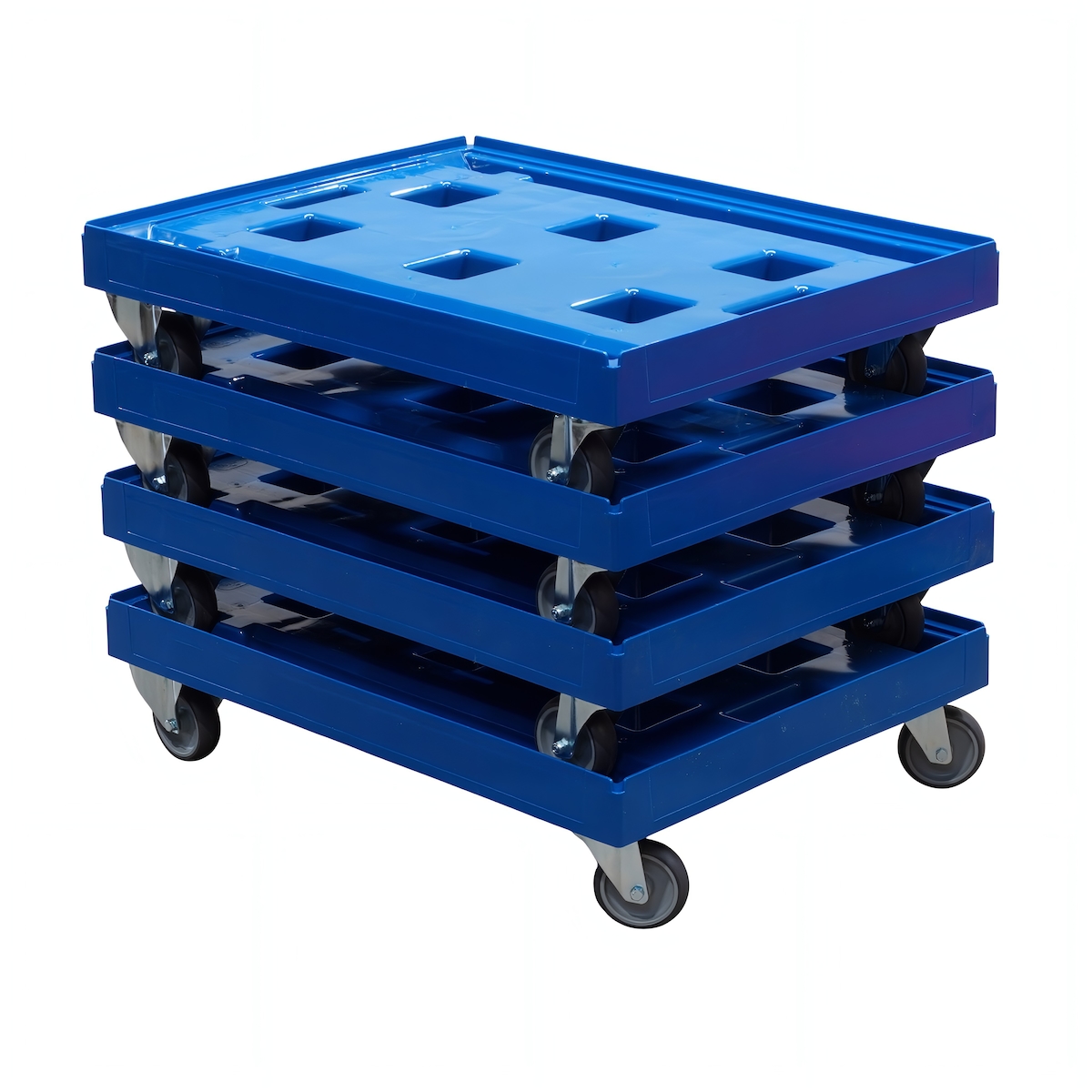 Logiplast 4 Stück Transportroller für Kisten 80 x 60 cm - 400 kg Traglast in Blau 2 Lenkrollen - 2 Bockrollen