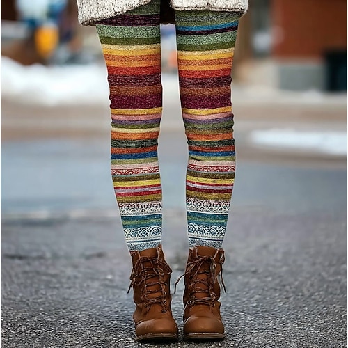 Per donna Leggings Vacanza Vintage Moda Lunghezza intera Vita Alta Grafico Blocco di colori Stampa Calore Termico Morbido Traspirante Elasticizzato Formale All'aperto Vacanza Marrone oliva Marrone