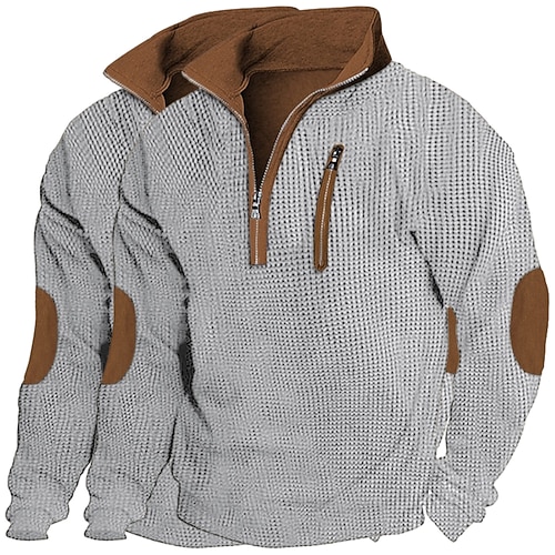 Per uomo Maglietta Maglietta a Maglia Waffle Camicia a Maniche Lunghe Manica Lunga Zip a un quarto Inverno Primavera Autunno Blocco di colori Testurizzato Moda Designer Essenziale Patchwork