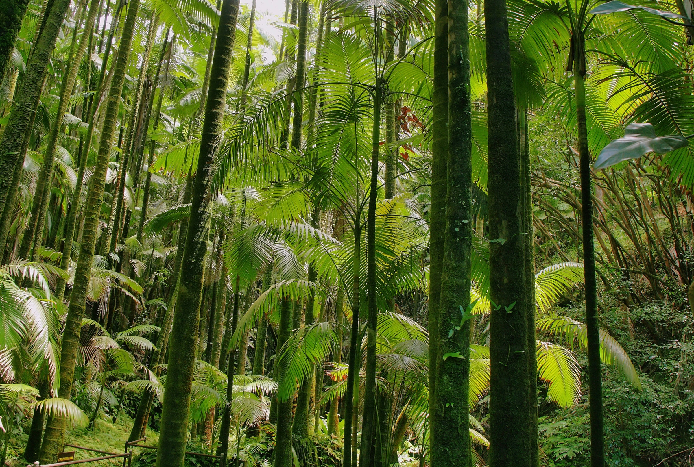 Fototapete PAPERMOON "TROPISCHER WALD-BAUM DSCHUNGEL SONNE WEG PFLANZE FARNE", bunt, B:4,00m L:2,60m, Vlies, Tapeten