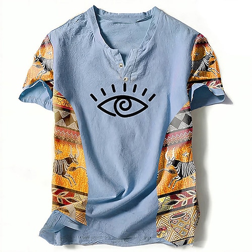 Per uomo Grafico Blocco di colori Tribale Maglietta Maglia Henley Manica Corta Stampa 3D Designer Etnico Classico All'aperto Vacanza Quotidiano Primavera Estate Blu Verde Cachi Grigio Scollo a V