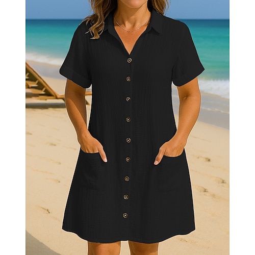 abito camicia casual da donna manica corta bottoni davanti lunghezza al ginocchio leggero strutturato bianco estate primavera uso quotidiano vestibilità comoda