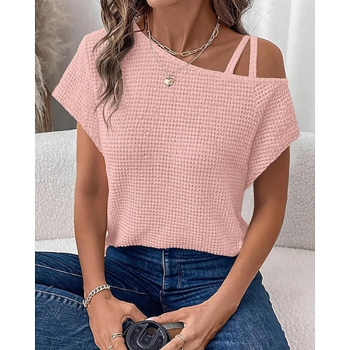 Per donna Camicia Semplice Casual Manica Corta Asimmetrico Top Regolari Quotidiano Ferie Uscire Uncinetto Nero Bianco Rosa Albicocca Rosa Estate Primavera