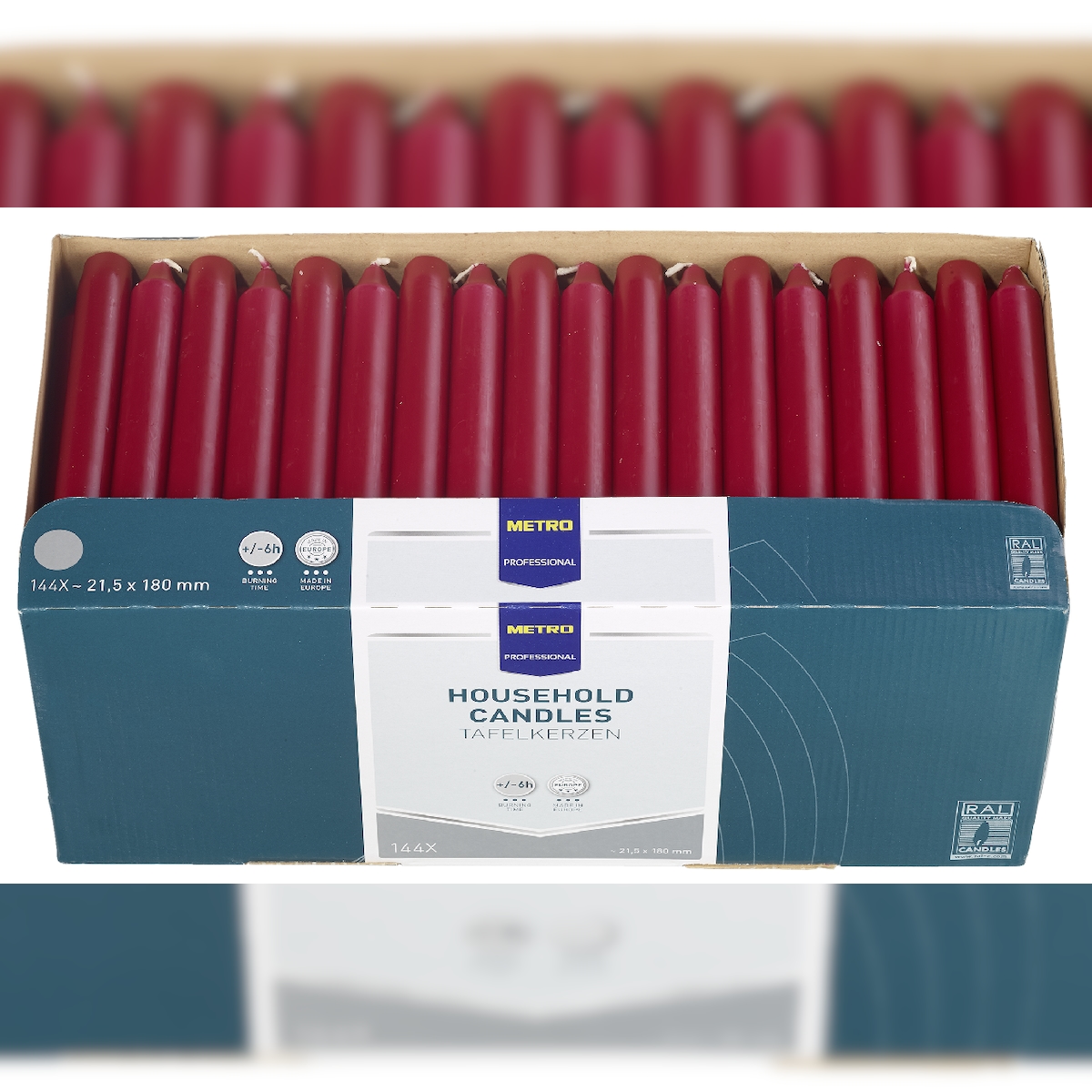 METRO Professional Tafelkerzen, Paraffin, Ø 2.15 x 18 cm, 6 Stunden Brenndauer, bordeaux, 144 Stück