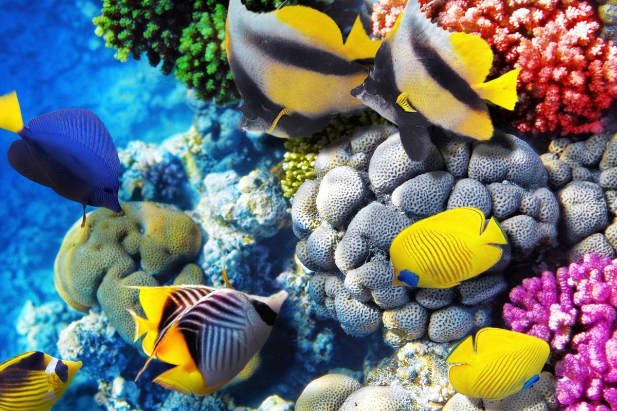 Fototapete PAPERMOON "Fische", bunt, B:5,00m L:2,80m, Vlies, Tapeten