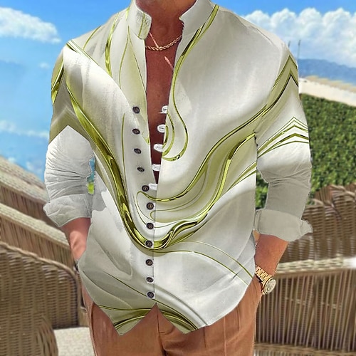 Per uomo Sfumatura Onde Marmo Camicia Camicia con colletto alla coreana Manica Lunga Casual Vacanza Abbigliamento quotidiano Uscire Primavera Autunno Collo alla coreana Colletto alla coreana