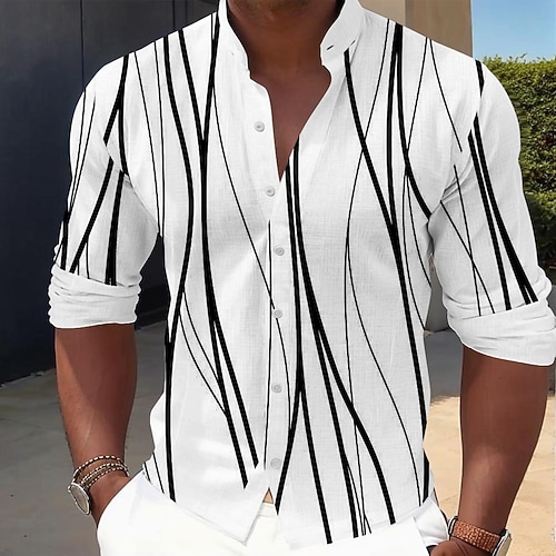 Per uomo Geometrico Linea Camicia Camicia con Bottoni Camicia con colletto alla coreana Manica Lunga Casual All'aperto Vacanza Quotidiano Primavera Autunno Collo alla coreana Colletto alla coreana