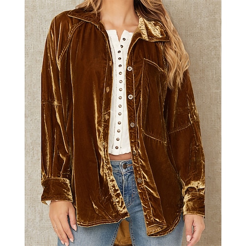 Per donna Camicia Velluto Elegant Elegante Tinta unica Elegante Manica Lunga Colletto a Camicia Top Regolari Lavoro Ferie Uscire Tasca Bottoni Verde militare Fucsia Marrone Primavera Autunno