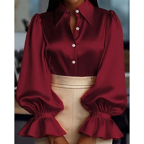 Per donna Camicia Elegant Elegante Raso/Satin Tinta unica Semplice Elegante Vintage Carino Manica Lunga Manica a Palloncino Colletto a Camicia Top Regolari Lavoro Quotidiano Ferie Arricciato