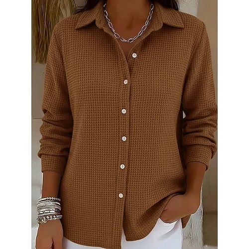 Per donna Camicia Semplice Elegante Vintage Quotidiano Manica Lunga Colletto a Camicia Top Regolari Ferie Uscire Blu Nero Rosa Rosso Cachi Estate Primavera