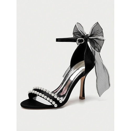 eleganti scarpe eleganti da donna in raso bianco con decorazioni di perle: sandali con tacco basso perfetti per matrimoni e occasioni speciali