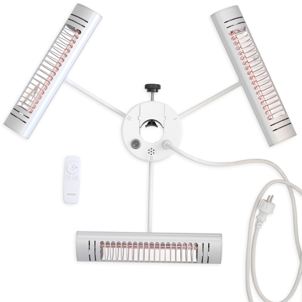 VASNER Umbrella X30 Schirm Heizstrahler Silber 3000 Watt für Sonnenschirm mit Stangen-Durchmesser 40 – 80 mm