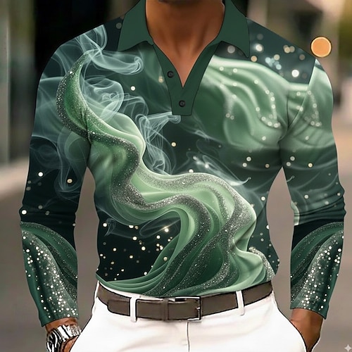 Per uomo Astratto Geometrico Polo Manica Lunga Magliette polo Bavero Casual All'aperto Streetwear Athleisure Abbigliamento quotidiano Stampa 3D Bottoni Primavera Autunno Inverno Nero Bianco Verde
