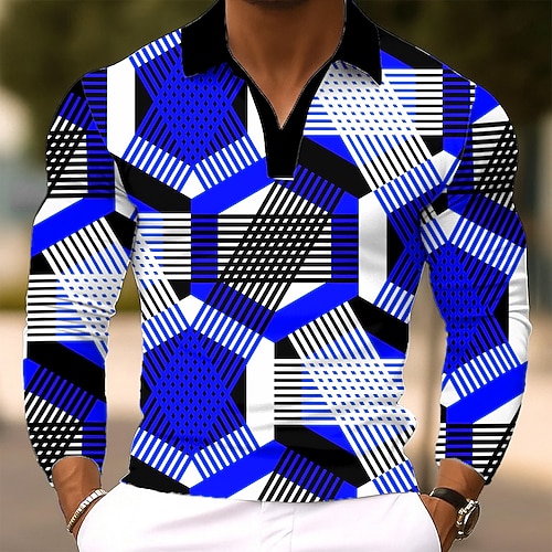Per uomo Geometrico Linea Polo Manica Lunga Magliette polo Camicie con Colletto Abbigliamento Sportivo Casual Abbigliamento da Esterno Abbigliamento quotidiano Stampa 3D Primavera Autunno Inverno