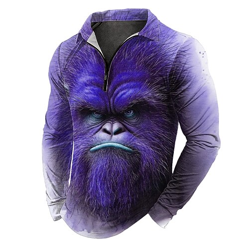 Per uomo Animale Polo con zip Manica Lunga Magliette polo Bavero Casual All'aperto Abito da festa Stampa 3D Primavera Autunno Inverno Rosso Viola Verde
