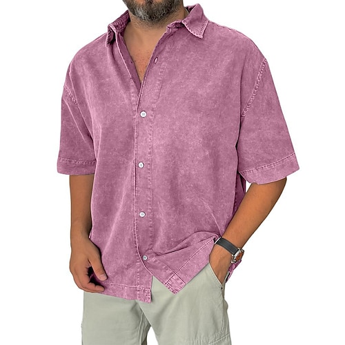 Per uomo Camicia Camicia casual Camicia con Bottoni Camicia lavata con acido Nero Bianco Blu marino Kaki Verde militare Manica Corta Semplice Colletto a Camicia Casuale Quotidiano Tasca Frontale