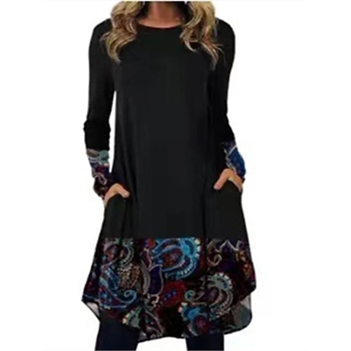 Per donna Abito Midi Tubino Vestito T-Shirt Abito a trapezio Abito sportivo Vacanza Casual Boho Quotidiano Vestibilità regolare Floreale Grafico Geometrico Manica Lunga Girocollo Marrone chiaro