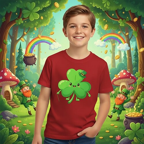 San Patrizio Unisex Ragazze 3D Grafico Quadrifoglio Maglietta Manica Corta Stampa 3D Estate Primavera Sport Moda Streetwear Bambini 4-12 Anni Girocollo Casuale Quotidiano All'aperto Vestibilit