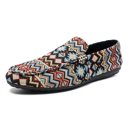 mocassini da uomo in jacquard multicolore con motivo a zigzag – scarpe casual slip-on alla moda per feste, vacanze e resort estivi