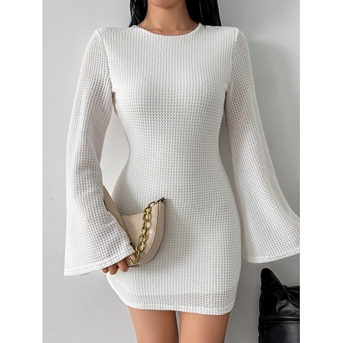 Per donna Mini Abito Abito Bianco Abito da laurea Abito aderente Elegante Moda Moderno Manica del polsino svasato All'aperto Vacanza Uscire Vestibilità regolare Semplice Manica Lunga Girocollo Nero