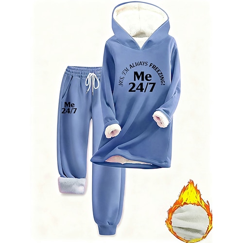 Per donna Quotidiano Elegante Set da due pezzi Tuta Set di Pantaloni Manica Lunga Con Cappuccio Grafico Lettera Coulisse Stampato Casuale Quotidiano Blu Nero Rosa Autunno Vestibilità regolare