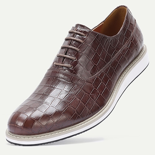 scarpe da uomo in pelle stampata coccodrillo marrone – design alla moda con lacci in pelle bovina di prima qualità, ideali per matrimoni, feste e occasioni formali