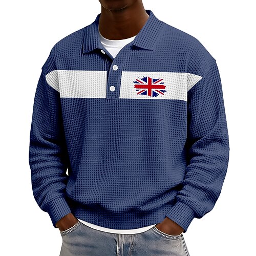 Per uomo Bandiera del Regno Unito Magliette Polo a Nido d'Ape Manica Lunga Magliette polo Bavero Casual Athleisure Abbigliamento quotidiano Stampa 3D Primavera Autunno Inverno Blu Rosso Blu marino