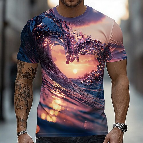 Per uomo Illusione ottica 3D Maglietta Manica Corta maglietta Stampa 3D Girocollo Camicia Esagerato Designer Feste Streetwear Casuale Rosa Blu Viola Estate Primavera Tutte le stagioni Abbigliamento S
