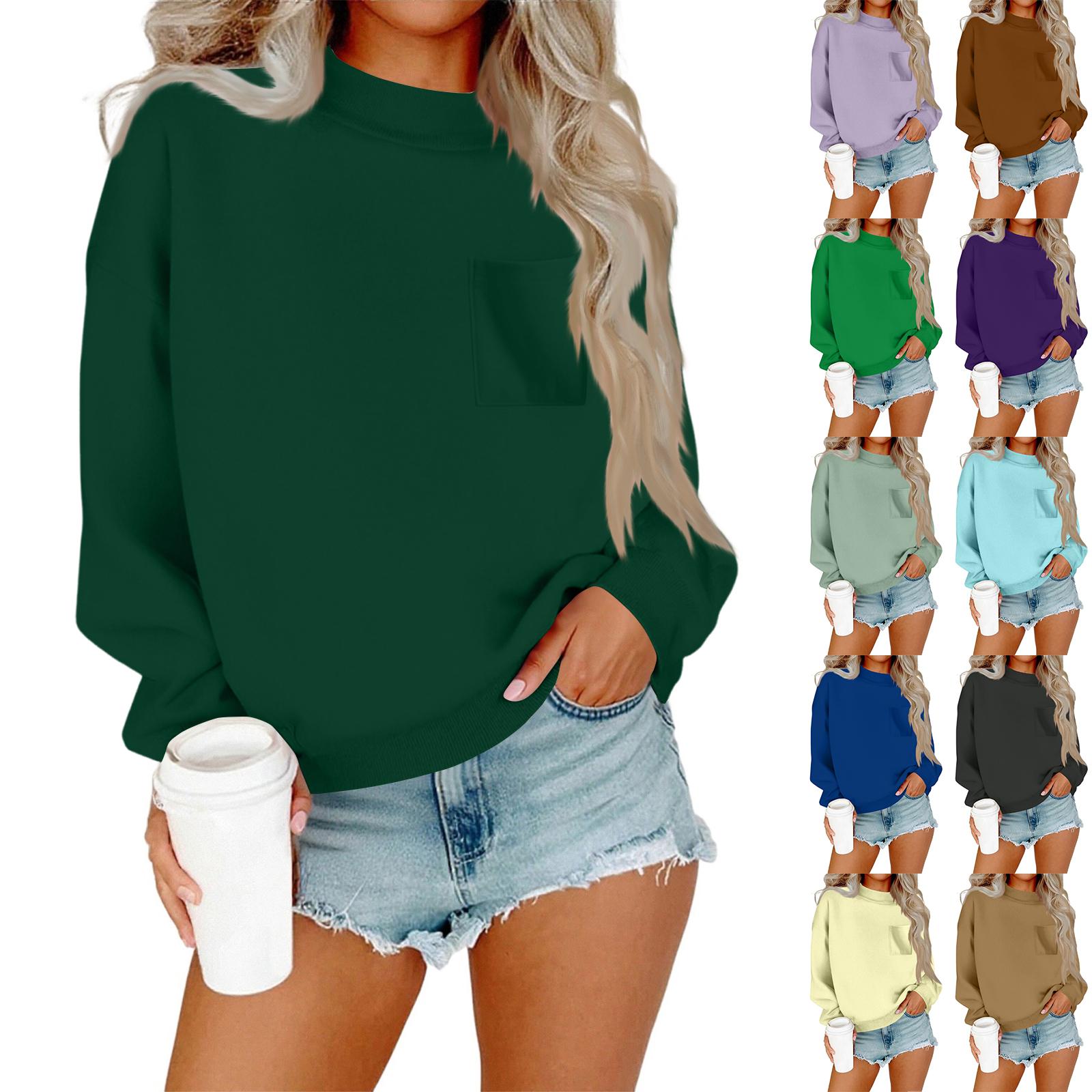Dames Casual Mode Sweatshirt met Ronde Hals en Lange Mouwen met Zakken cm
