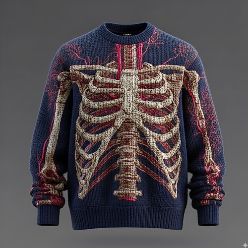 Per uomo Scheletro Maglione Maglieria Girocollo Casual Scuro Vacanza Streetwear Quotidiano Stampa 3D Tenere al caldo Manica Lunga Autunno Inverno Nero Blu Verde