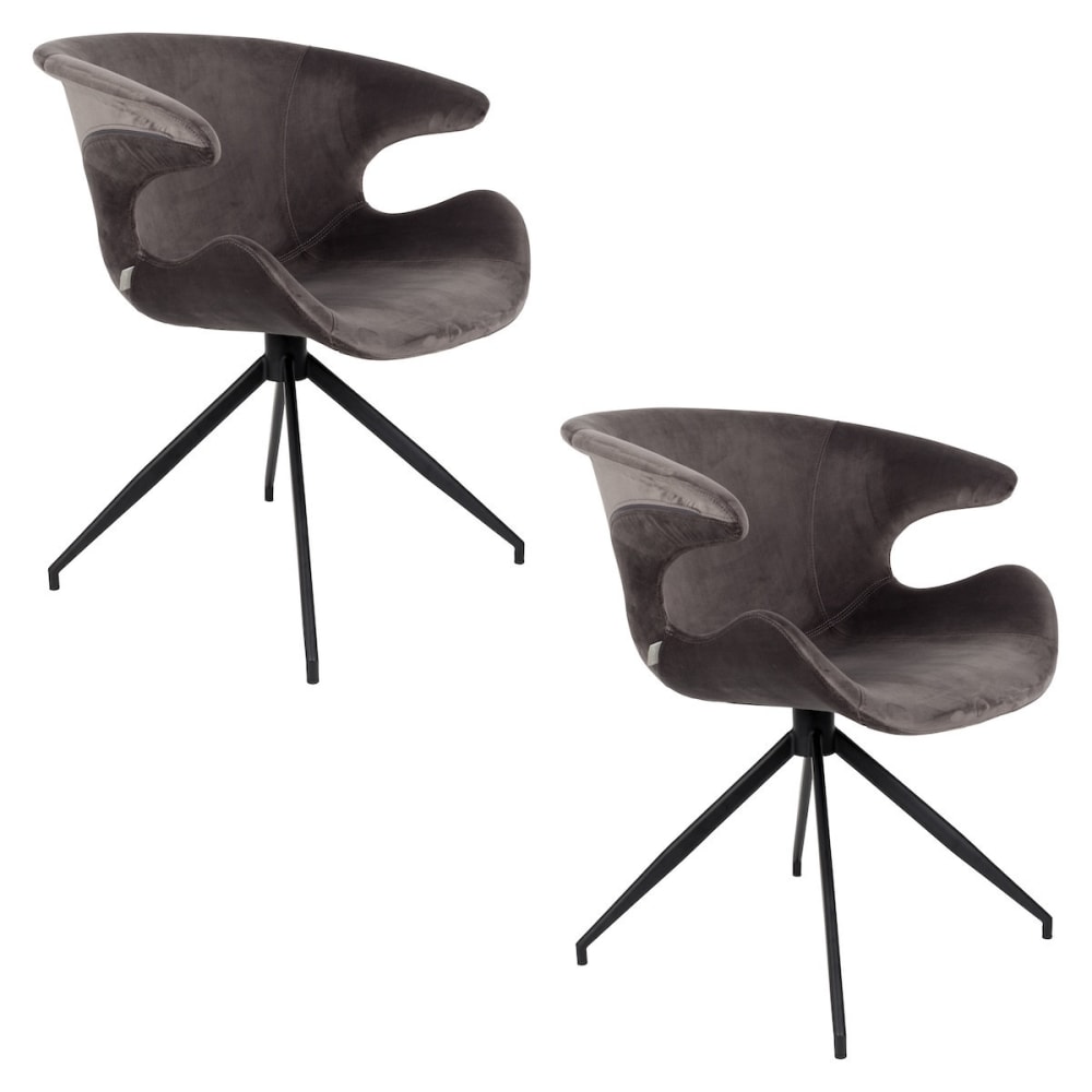Set di 2 sedie con braccioli in tessuto rivestito nero