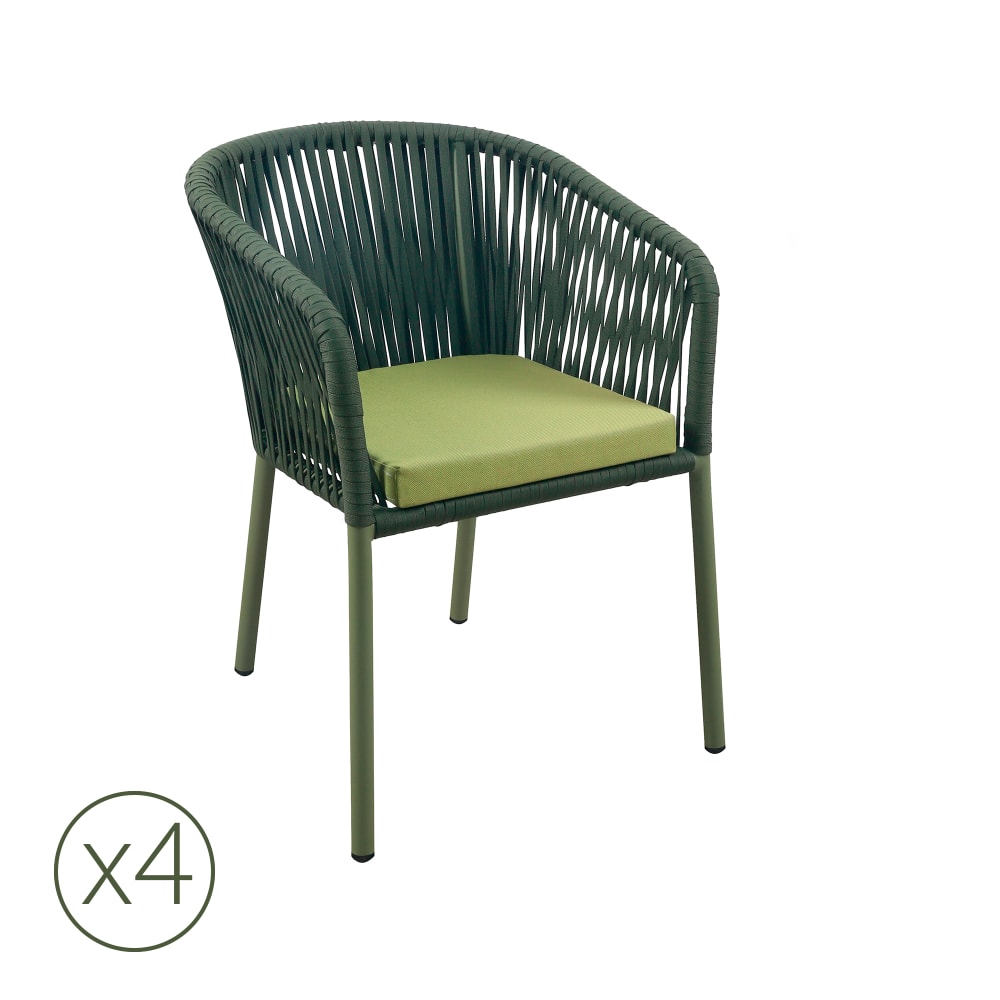 Tavolo da terrazza quadrato (70 x 70 cm) e 4 sedie verde scuro