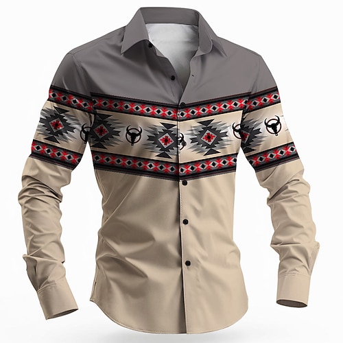 Per uomo Animale Toro Camicia da lavoro Camicia Western Camicia cargo Manica Lunga Pantaloni Tattici Vintage Retrò Sport all'Aperto Abbigliamento da lavoro Primavera Autunno Collo ripiegato Due