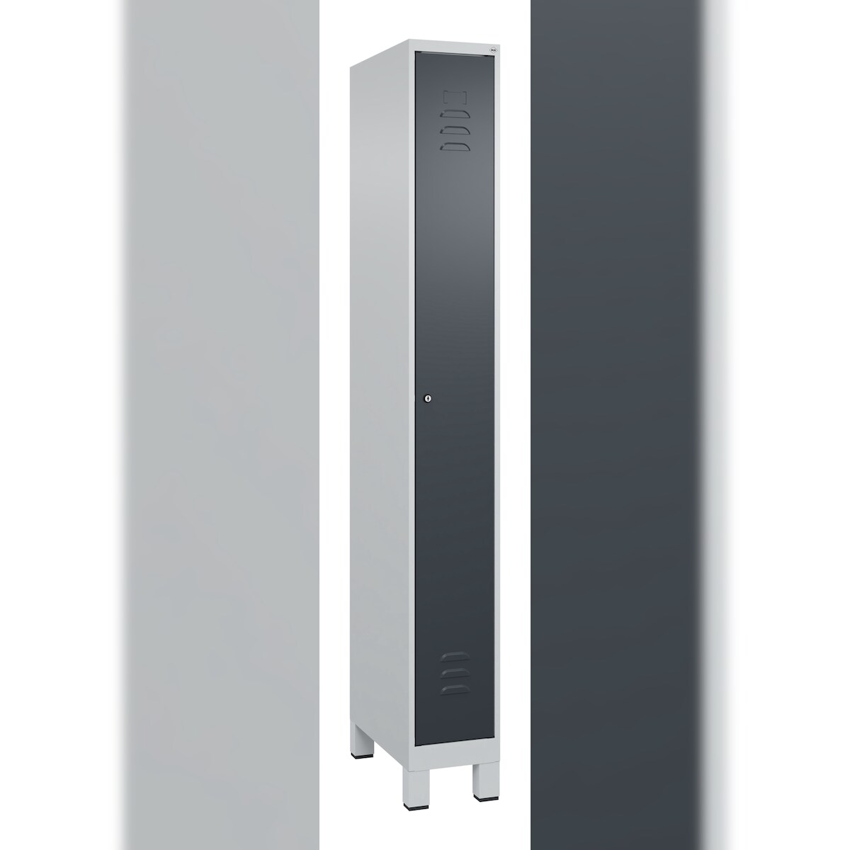 C+P Spind Classic PLUS, Füßen, 1 Abteil, HxBxT 195x25x50cm, Zylinderschloss, Hellgrau/Anthrazit von PROREGAL