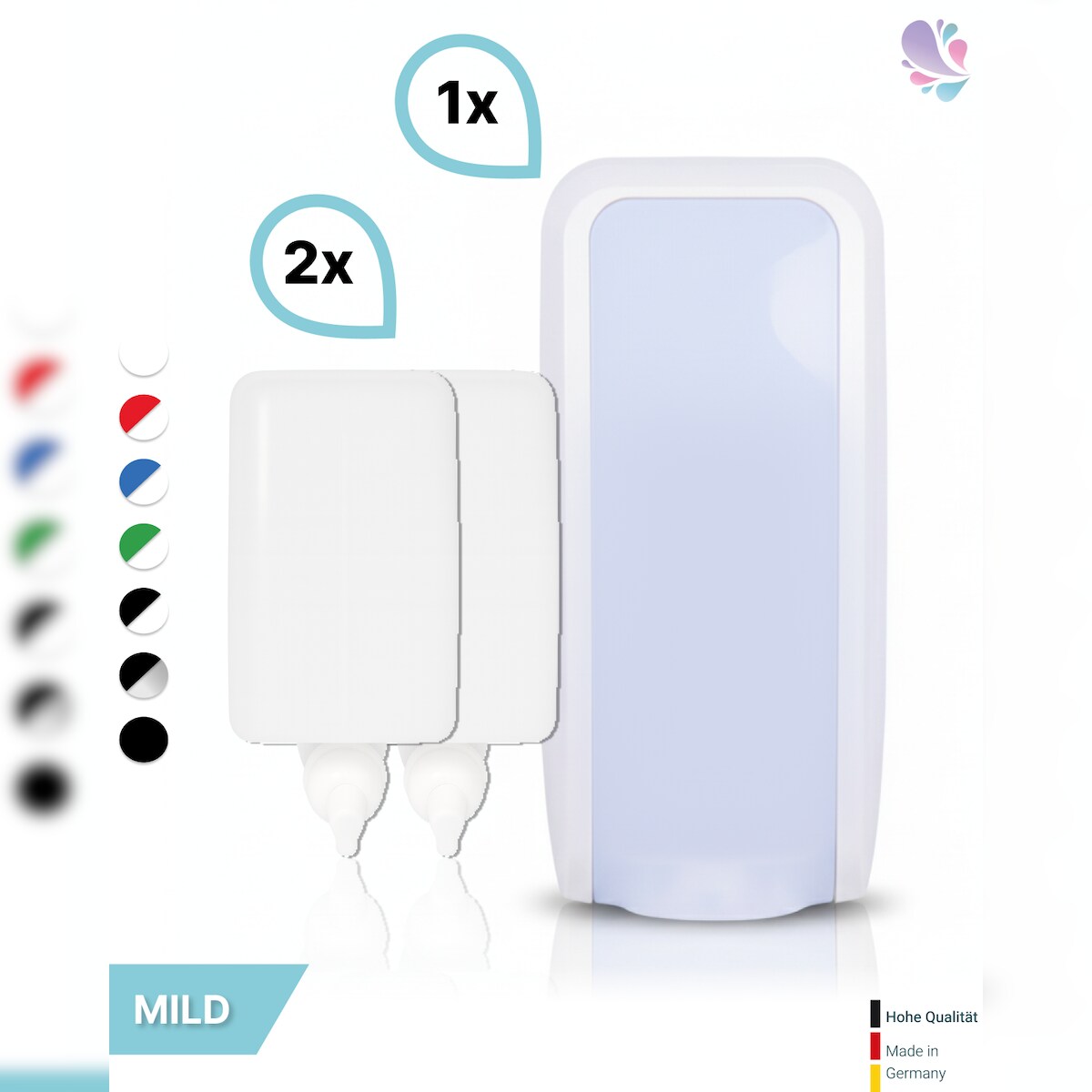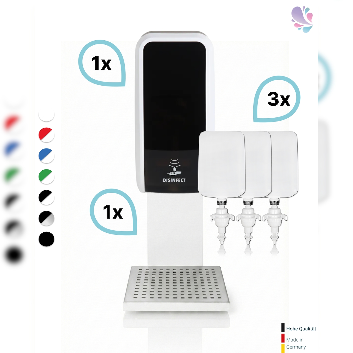 Blanc HYGIENIC SET: Desinfektionsspender SENSOR Blanc Cosmos versch. Farben + Tischständer weiß +3x 1-Liter Hautdesinfektion : Farbe - Schwarz / Weiß